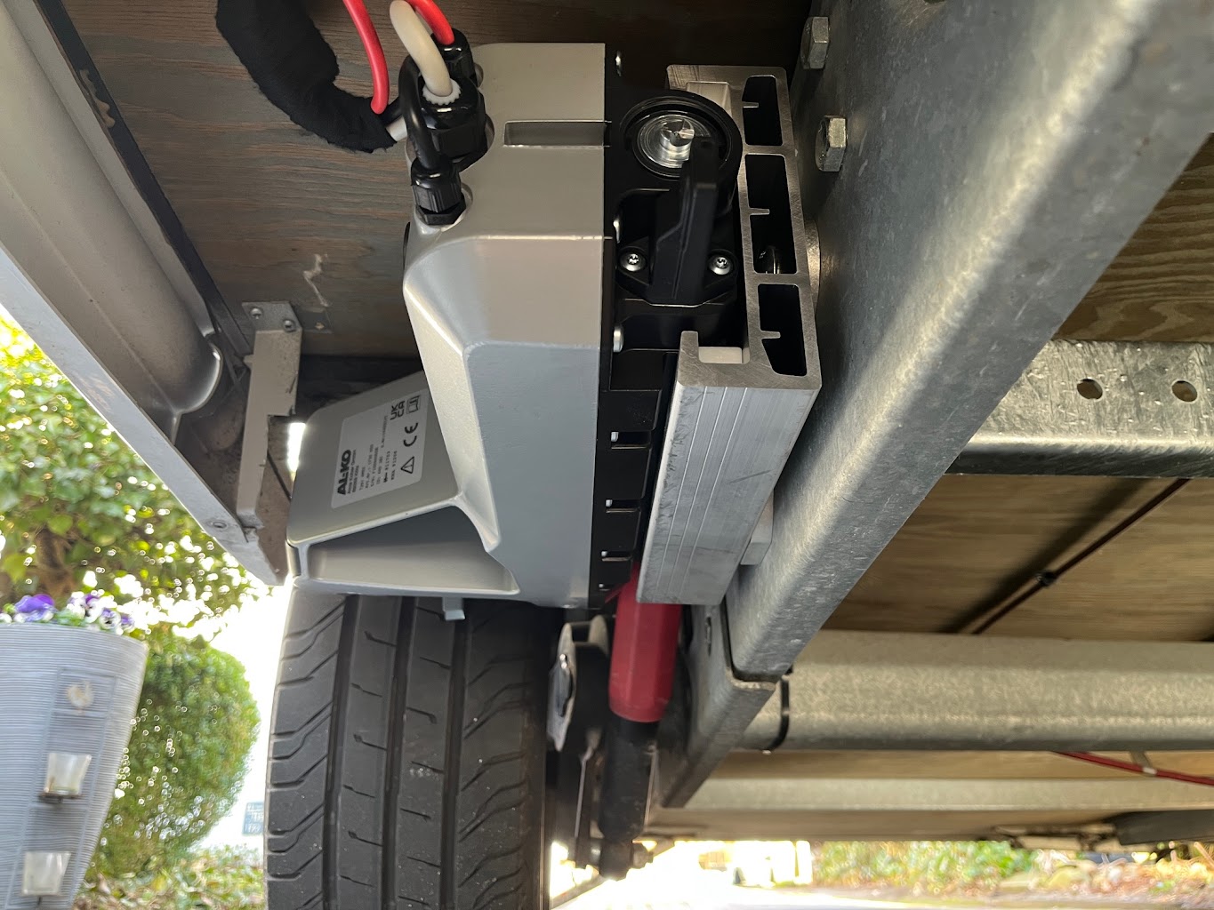 There is a drain pipe for the Alde heating situated just in front of the wheel that can only