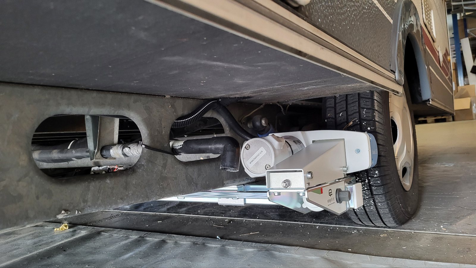 Bei den Umlenkhebelsystemen von Truma werden beide Antriebsrollen einfach und leicht mit einem Hebel in einer Bewegung an den Reifen gedrückt. Der Abstand zwischen Reifen und Antriebsrolle ist wichtig. Ändert sich dies, muss der Mover neu eingestellt werden. Wir montieren deshalb unsere Wohnwagenmover, wenn Ihr Wohnwagen auf dem Boden steht. Nur so sind die Reifen belastet und der Abstand zwischen Rolle und Reifen kann richtig eingestellt werden. Sie sehen, Qualität fängt schon an bei der Montage.